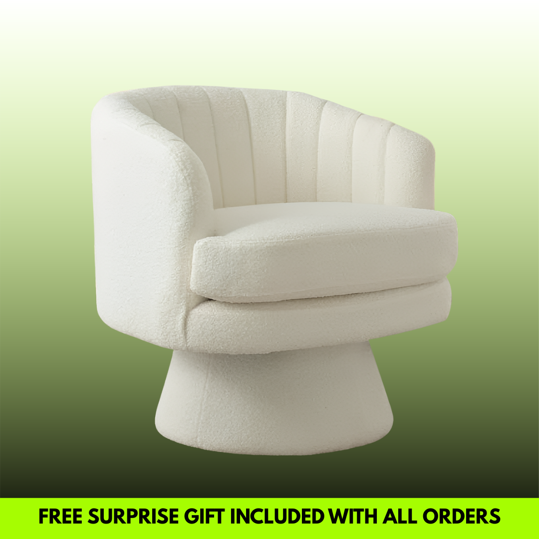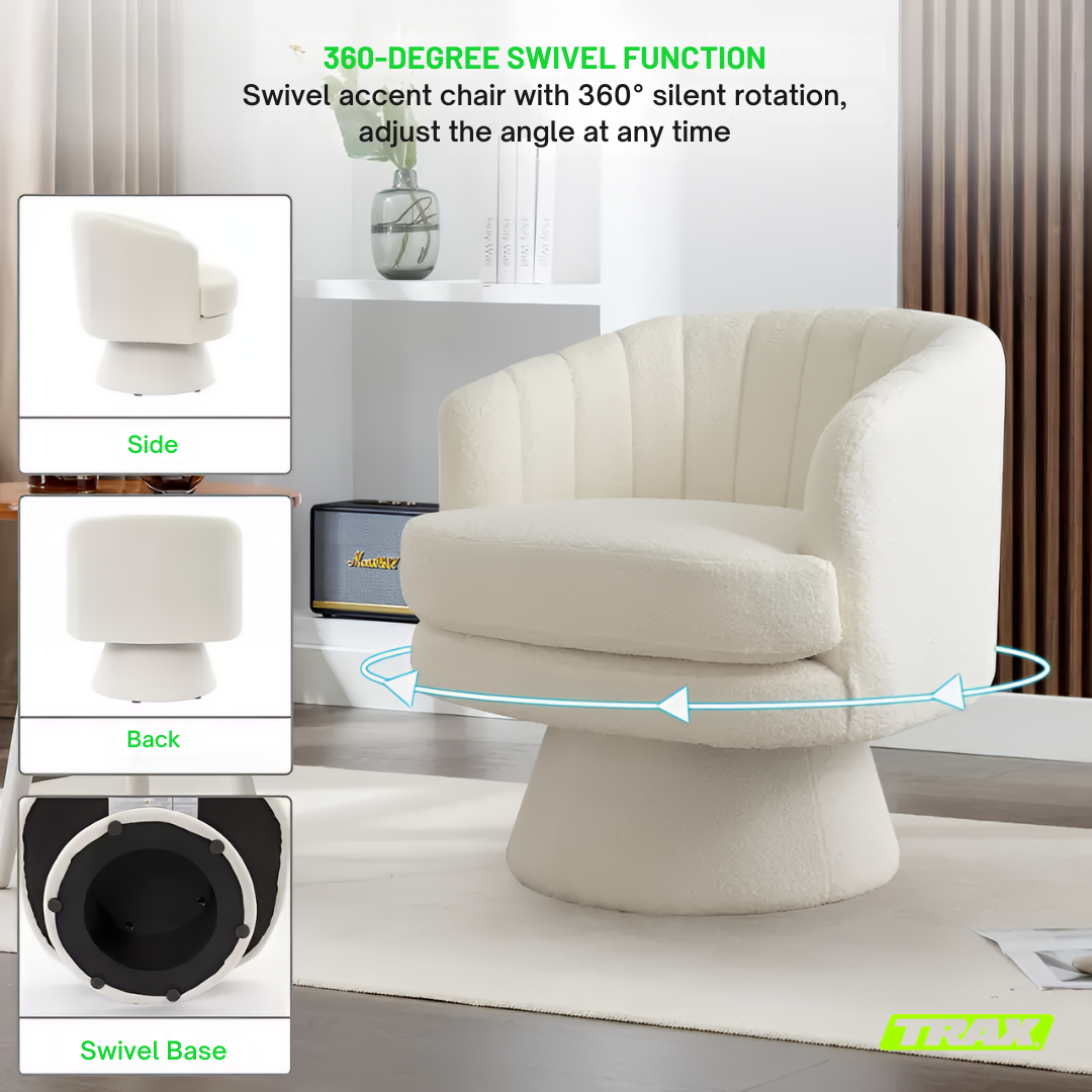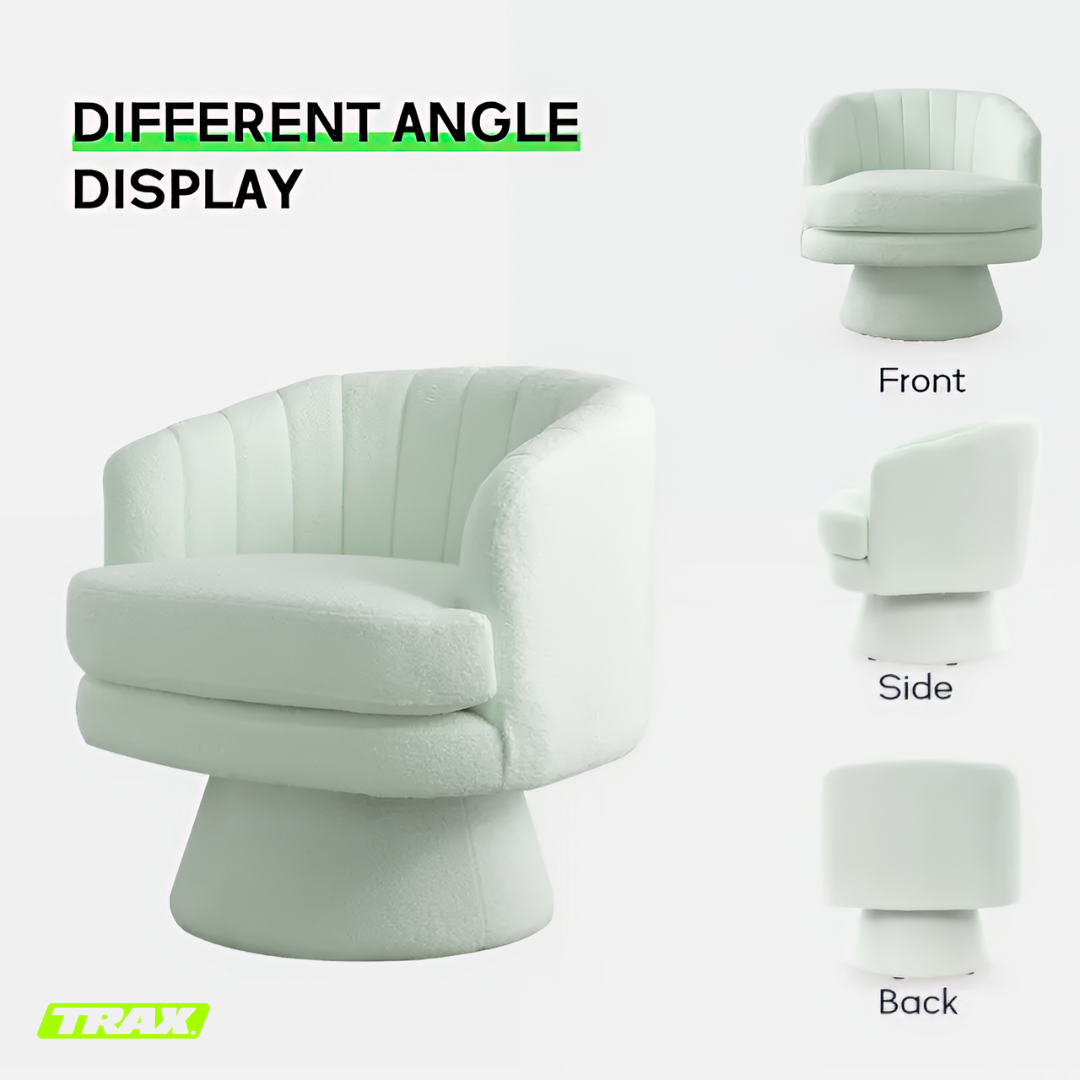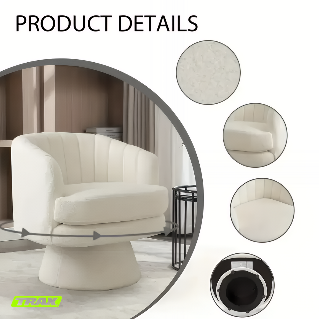 I absolutely love the TRAX Bloom chairs! They instantly elevated my lounge area with their soft, luxurious lambswool texture and modern rounded design. The 360° swivel is super smooth and convenient, letting me turn easily without getting up. They’re incredibly comfortable — perfect for relaxing with coffee or reading by the window. The quality feels premium, and the neutral beige tone blends beautifully with any décor. Truly worth every penny!