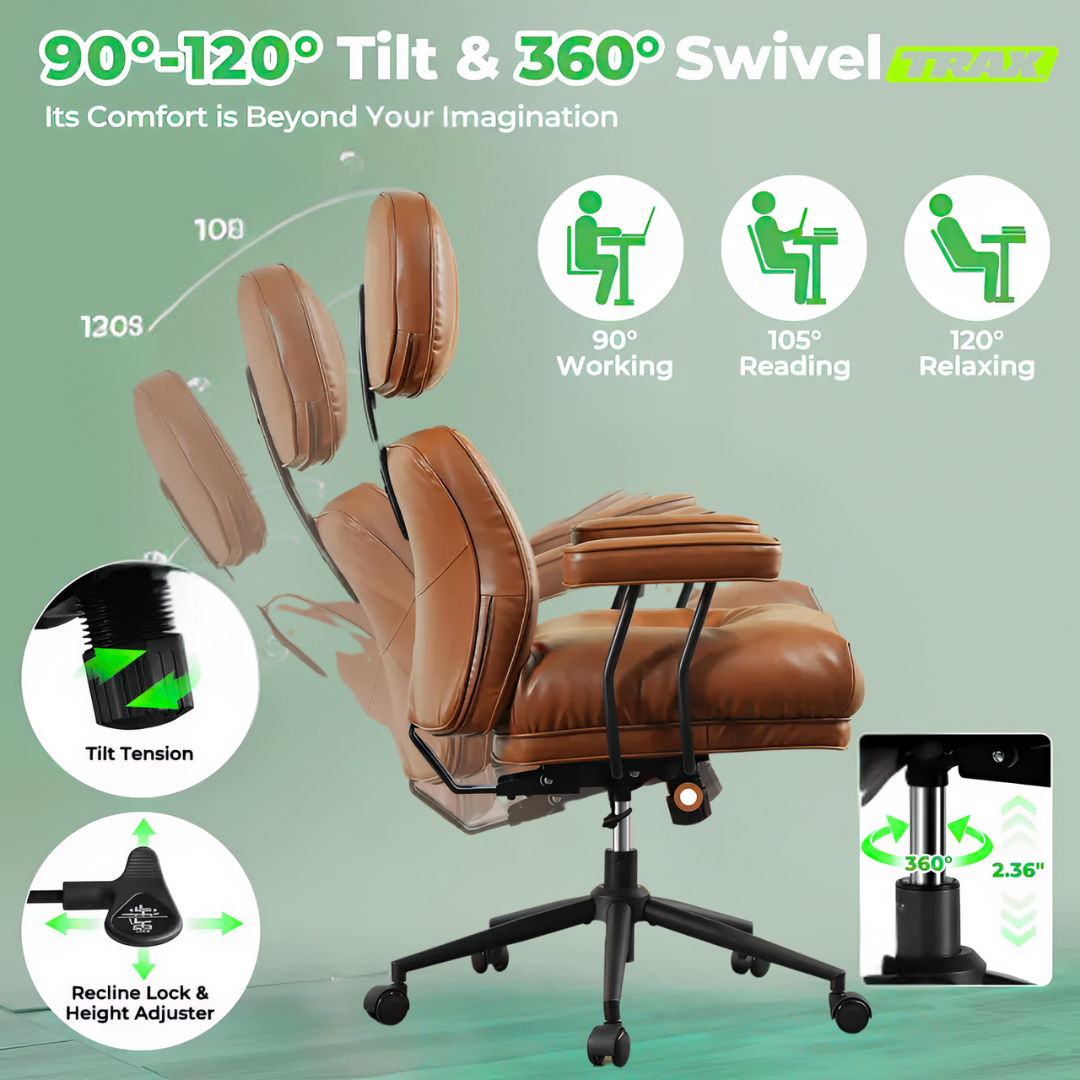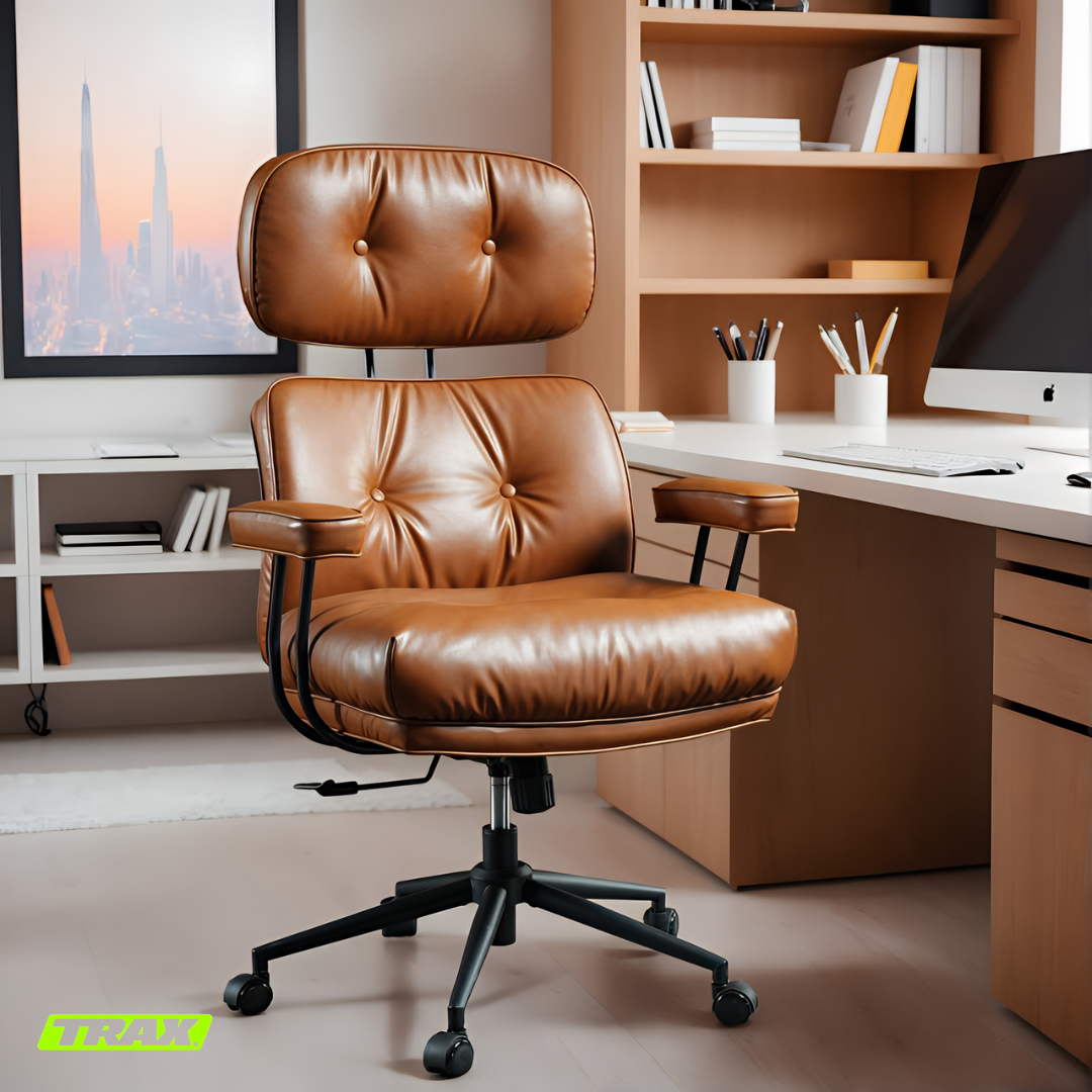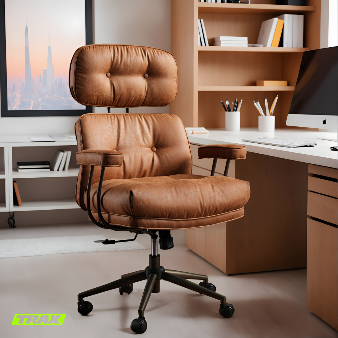 The TRAX EliteMax completely transformed my workspace. The rich brown faux leather looks elegant and feels premium, while the thick cushions make sitting for hours an absolute pleasure. It’s supportive, smooth-rolling, and built with real attention to detail — no more back pain or stiffness after long workdays. Setup was quick, and the overall quality exceeded my expectations. A perfect mix of comfort, durability, and timeless mid-century design!
