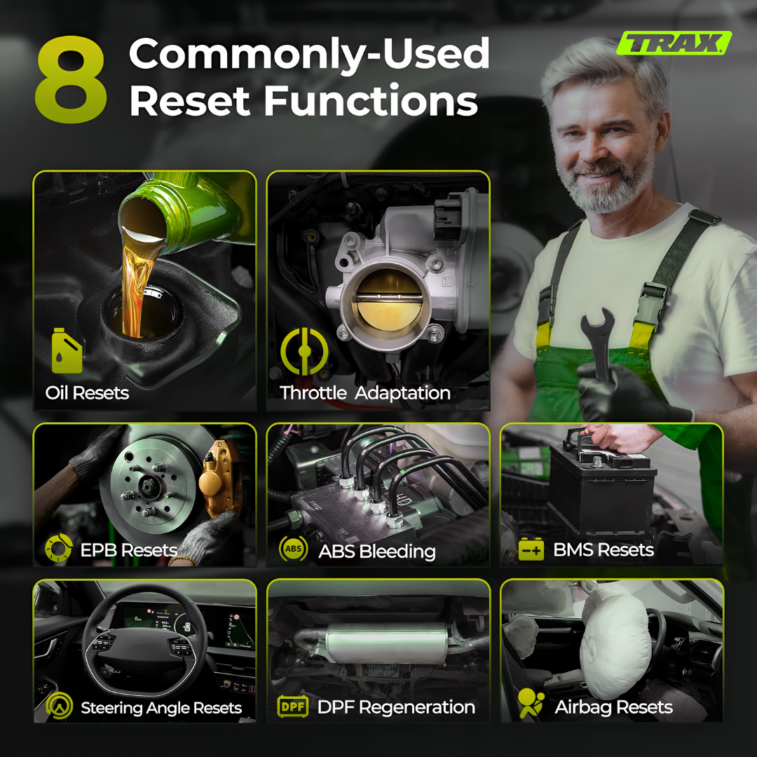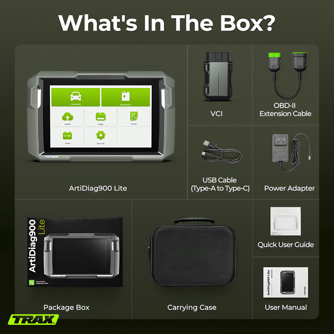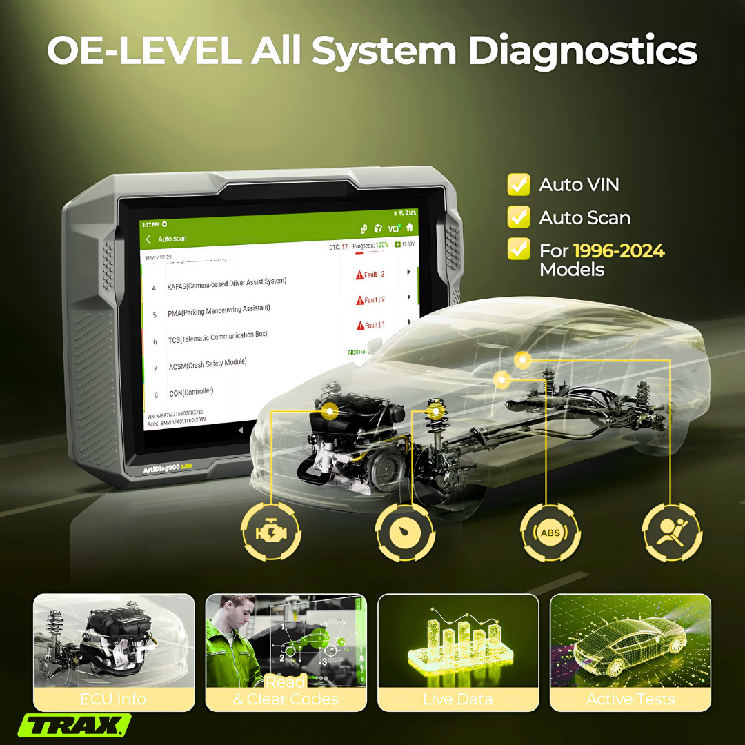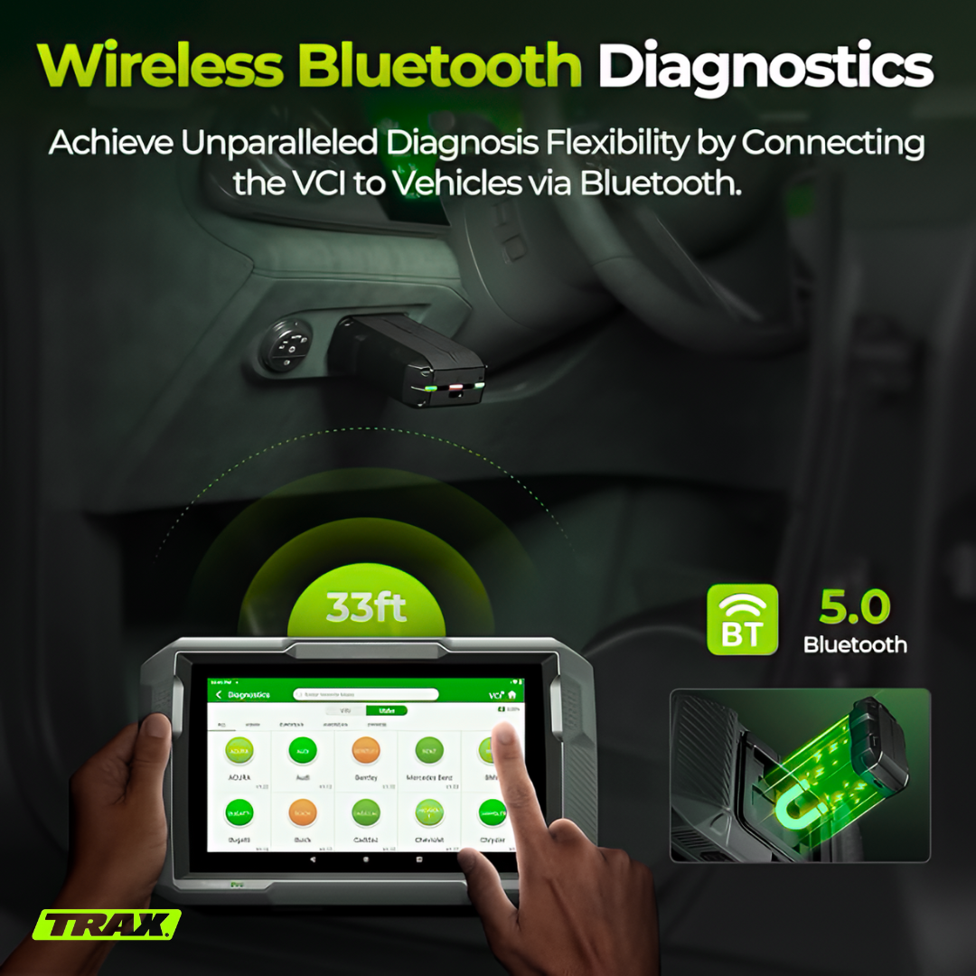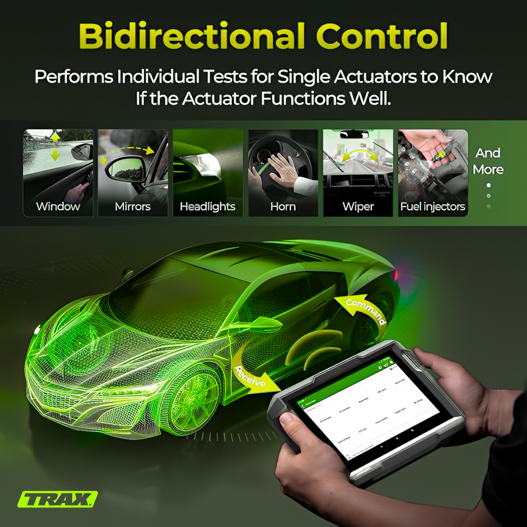 The TRAX MechaScan™ delivers full-system diagnostics, live data streaming, and bidirectional tests. It can read and clear codes for engine, transmission, ABS, SRS, and more, giving complete insight into a vehicle’s health.