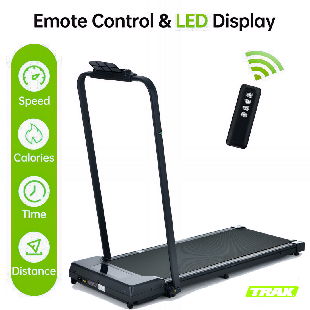 The TRAX PowerWalk has exceeded my expectations! The digital display is bright, easy to read, and shows all the key stats like time, speed, and calories clearly. I love how smooth and quiet the belt runs — perfect for morning walks without waking anyone up. It feels sturdy yet compact enough to fit perfectly in my apartment. The remote control makes adjusting the pace simple while I walk, and setup took literally minutes. If you’re looking for a reliable, space-saving treadmill for everyday exercise, this is the one!