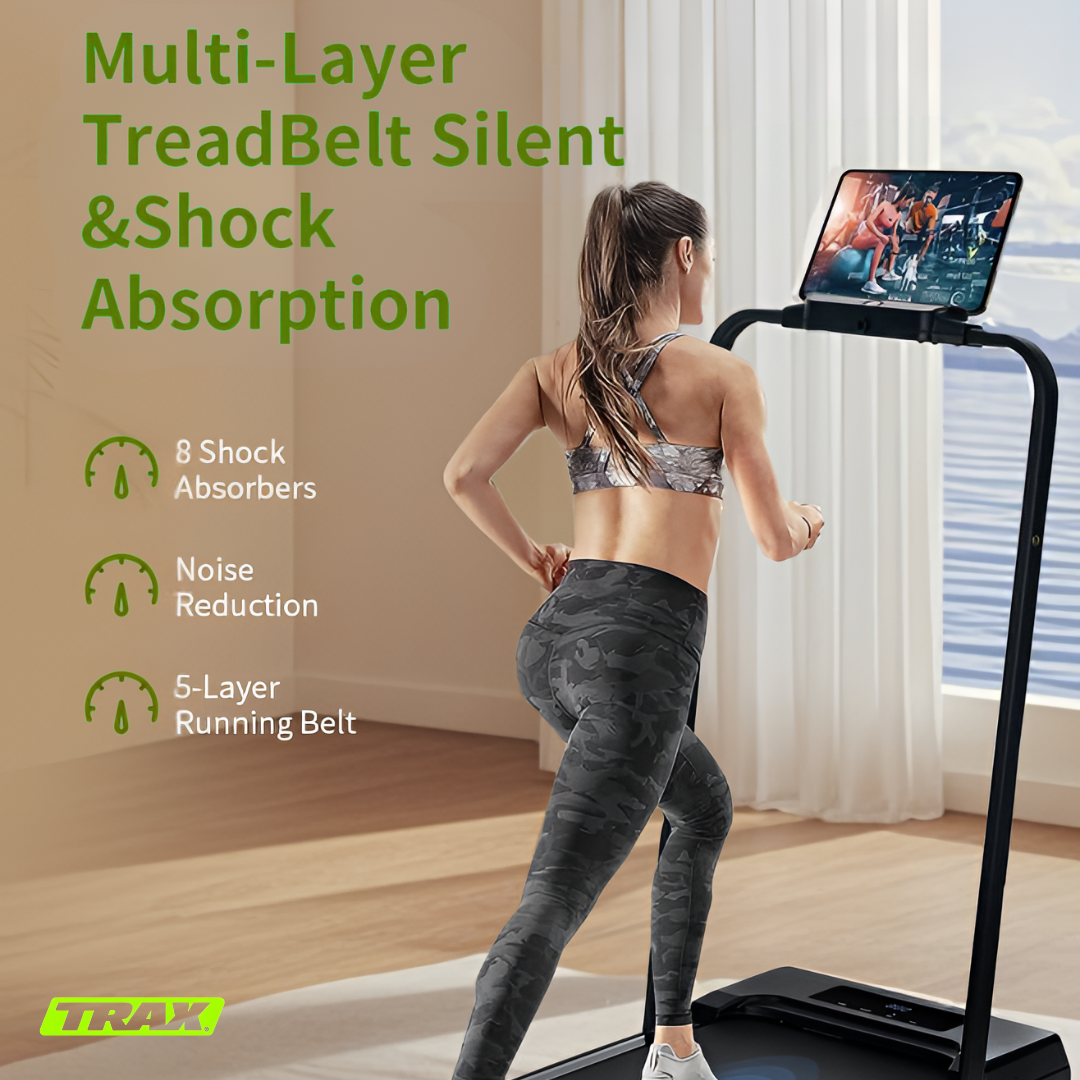 Absolutely. The TRAX PowerWalk™ offers adjustable speed settings to support both steady walking and light jogging. Its sturdy frame, shock-absorbing belt, and quiet motor deliver a smooth and stable workout experience anywhere.