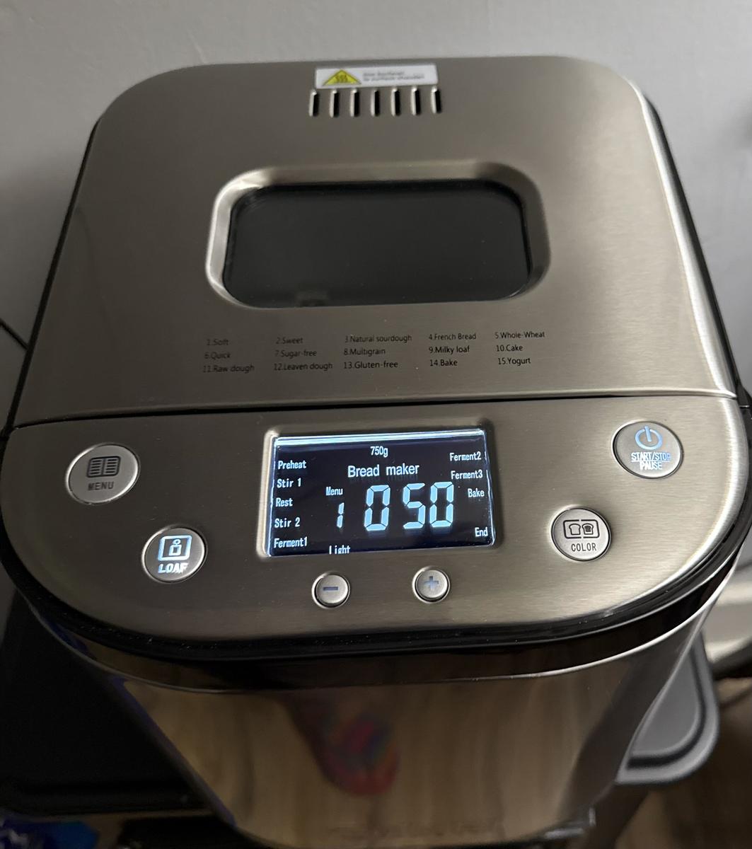 15 pre-programmed baking settings for bread, dough, cake, and more